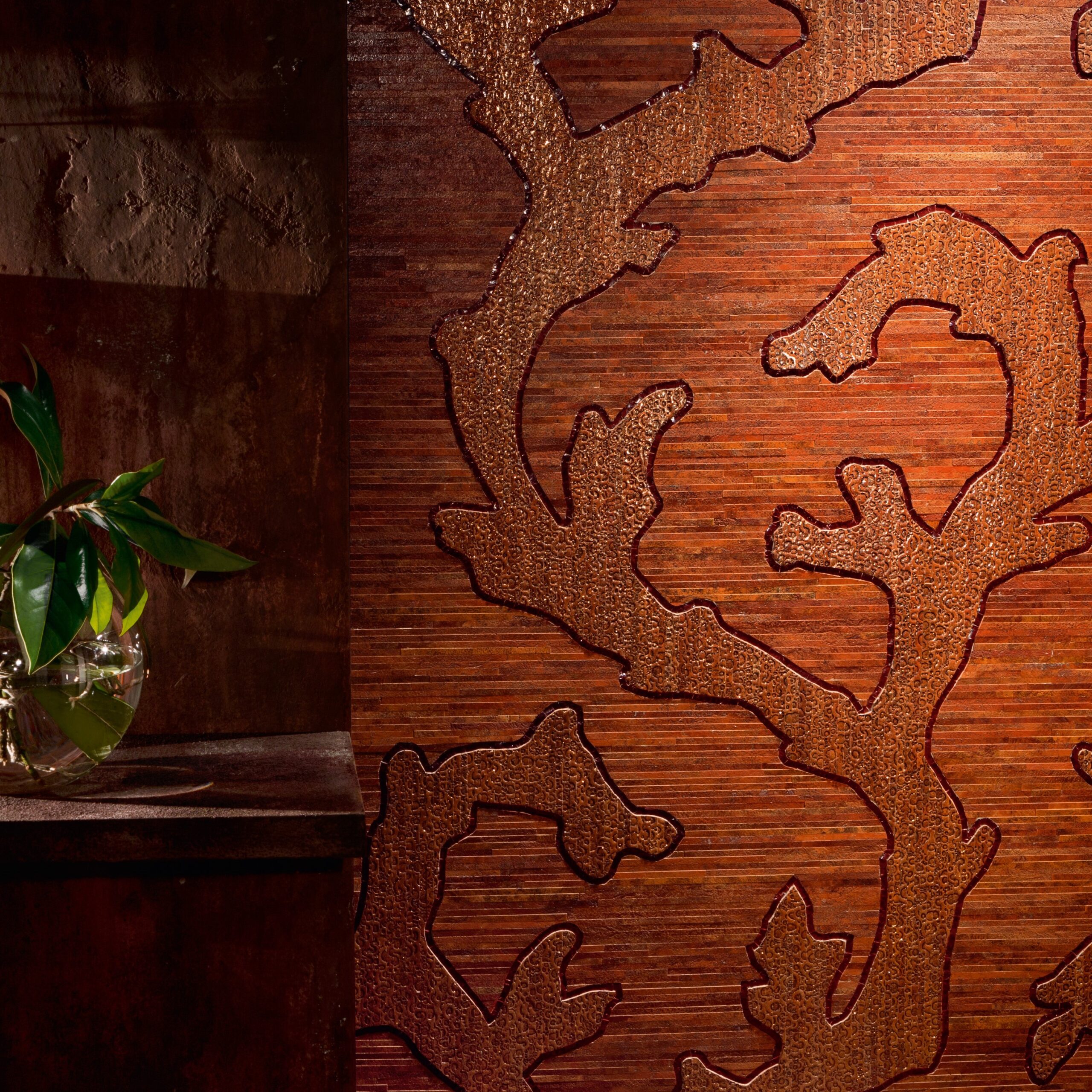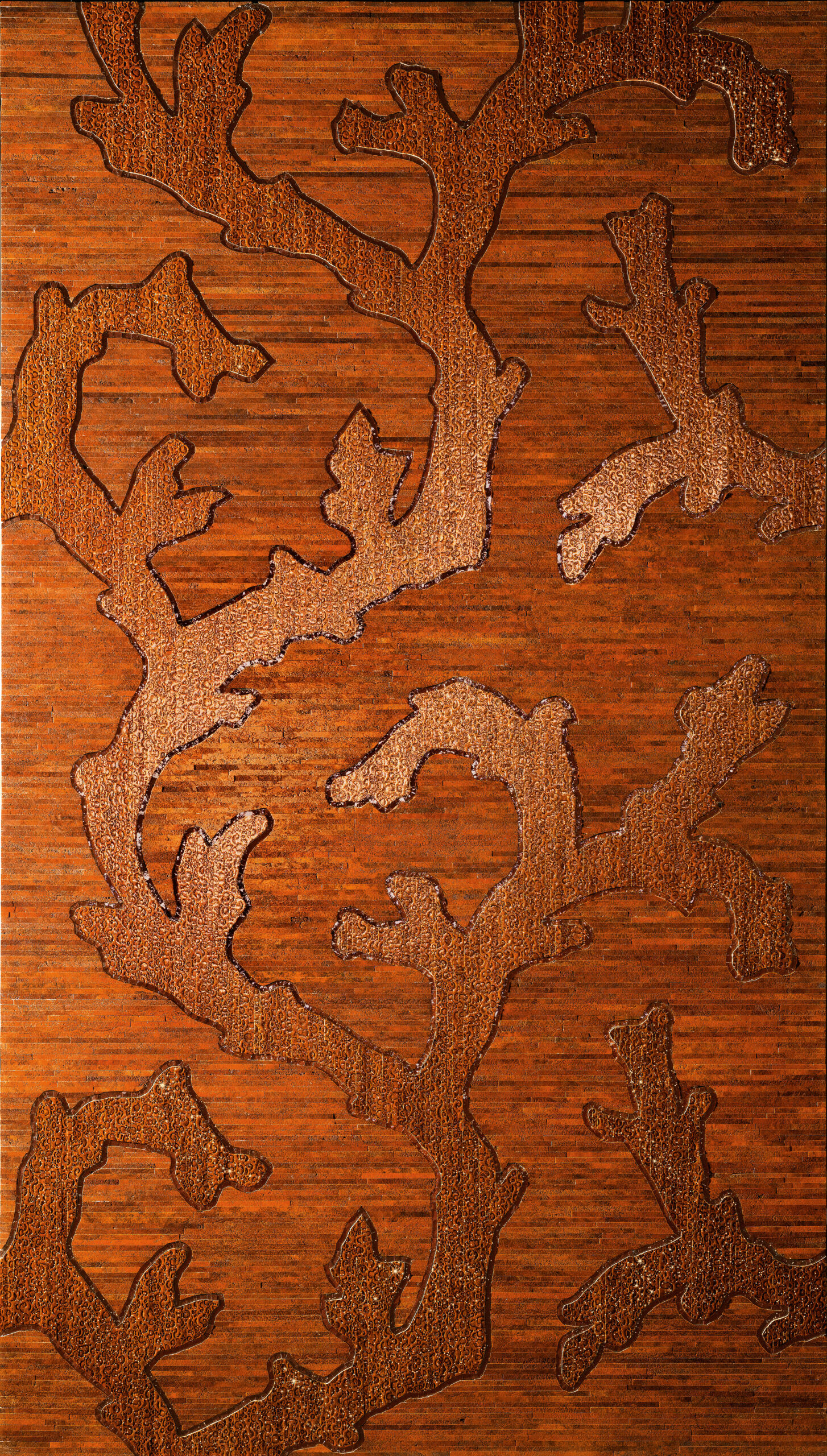 顏色豐富而深邃,從橙黃色到深棕色的漸變,就像是珊瑚礁在陽光照射下顯現的不同色彩,散發出溫暖而富有層次的光芒。
